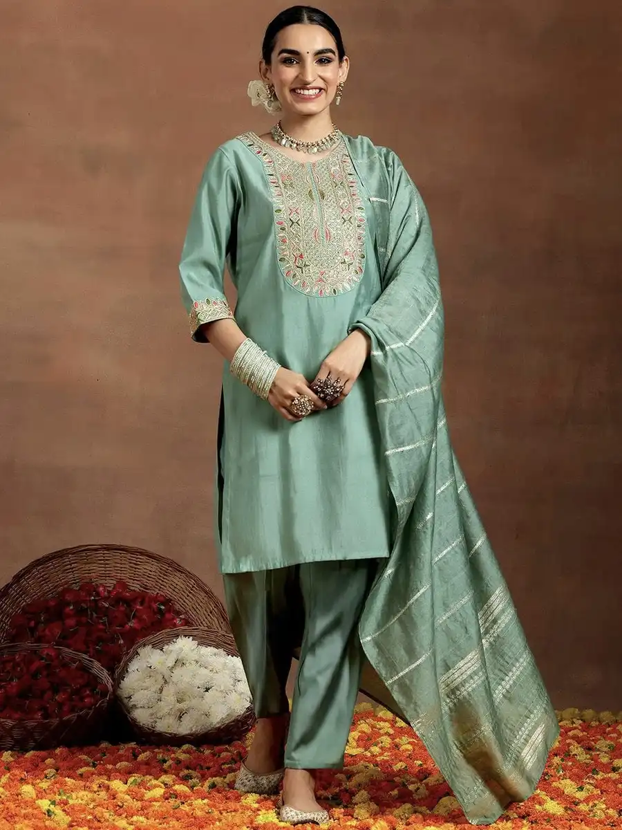 MODERN CHANDERI SILK SEQUENCE CODING EMBROIDERY WORK TOP BOTTOM WITH DUPATTA RAMA