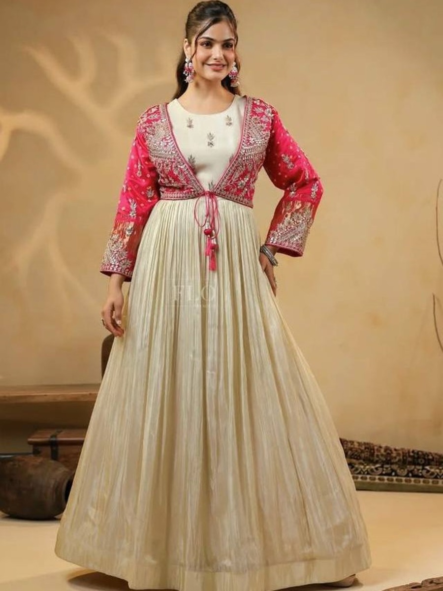 GOWN FABRIC :-PREMIUM SILK WITH SEQUENCE EMBROIDERY WORK