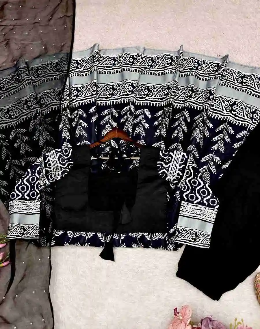 MODERN CHINON SILK DIGITAL PRINT WORK GOWN BOTTOM WITH DUPATTA BLACK