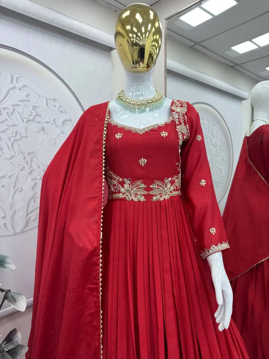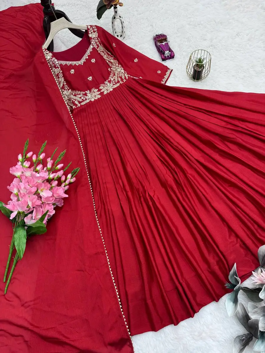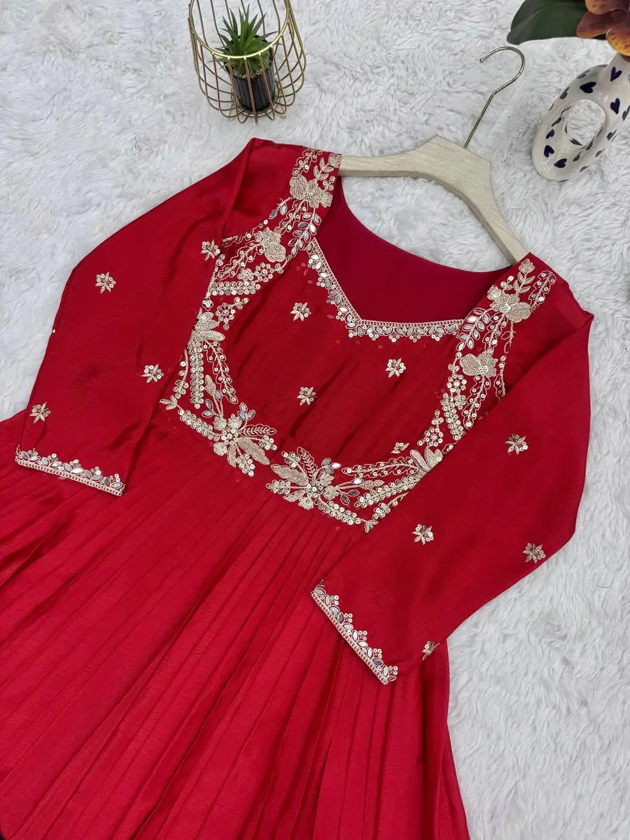 MODERN CHINON SILK EMBROIDERY CODING & SEQUENCE WORK WITH REAL MIRROR WORK GOWN WITH DUPATTA RANI