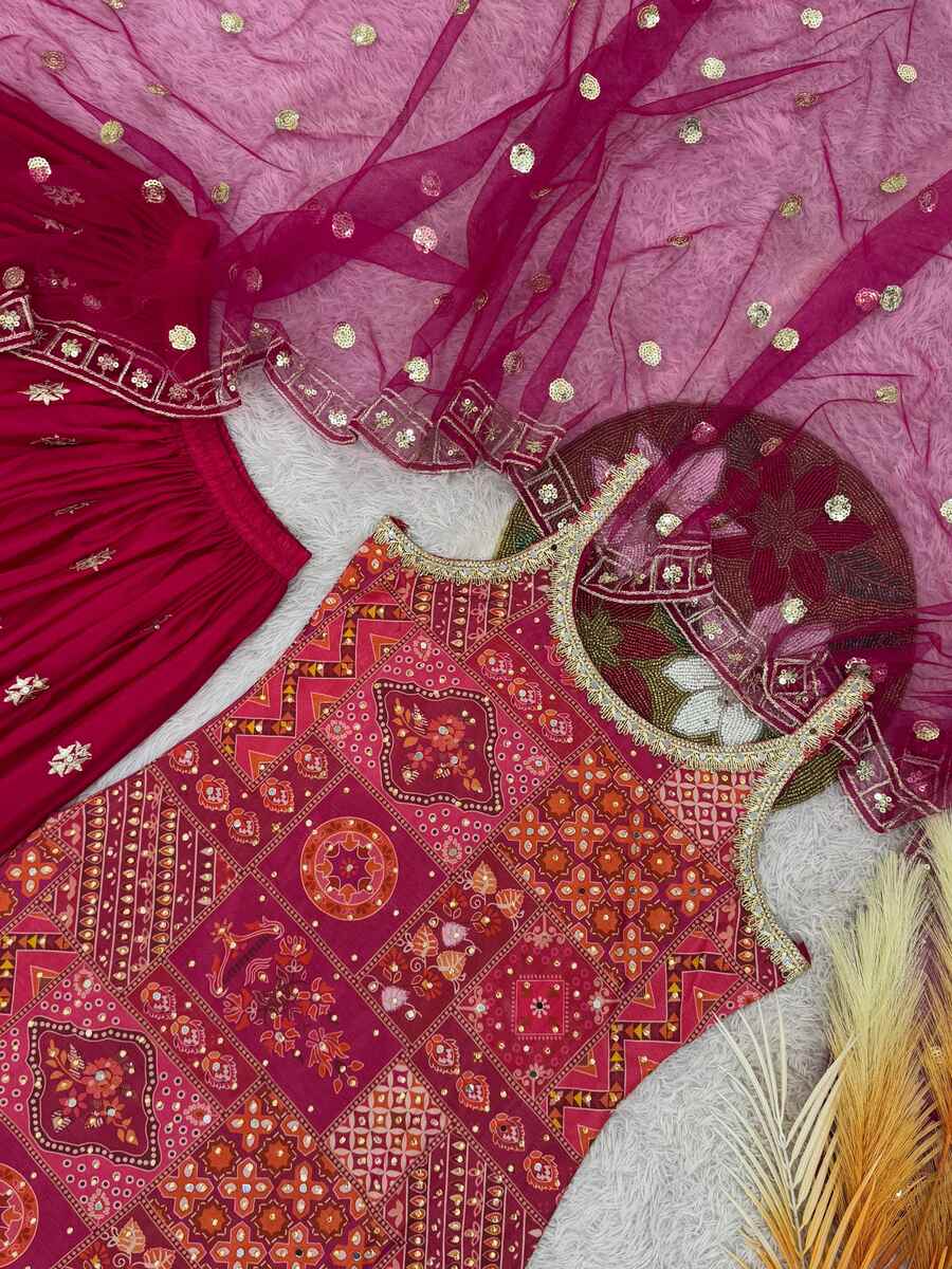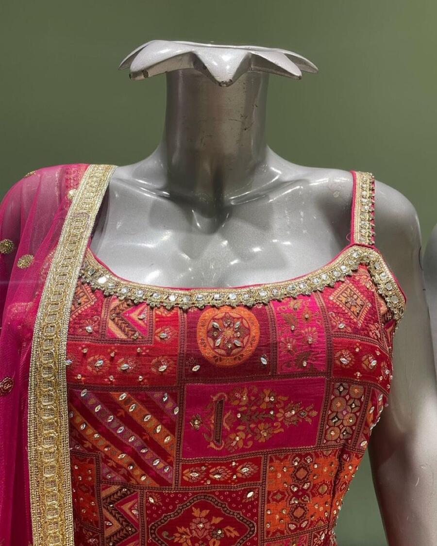 MODERN CHINON SILK FANCY DIGITAL PRINT WITH REAL MIRROR AND STONE HAND WORK TOP PALAZZO WITH DUPATTA RED