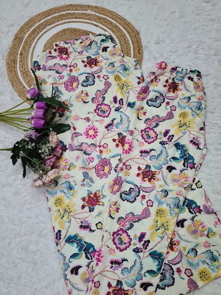 MODERN COTTON DIGITAL PRINTED WORK TOP BOTTOM SET MULTI