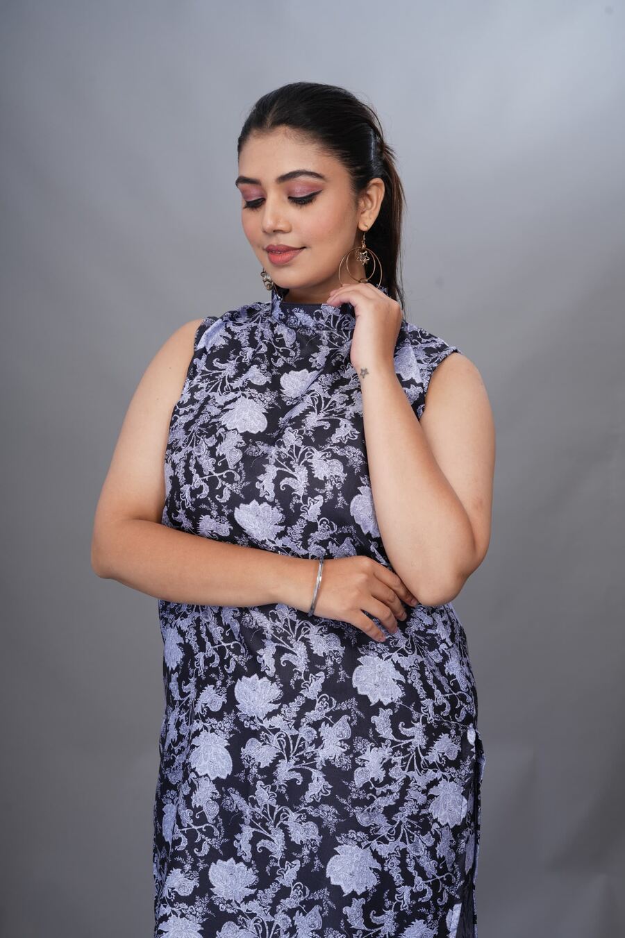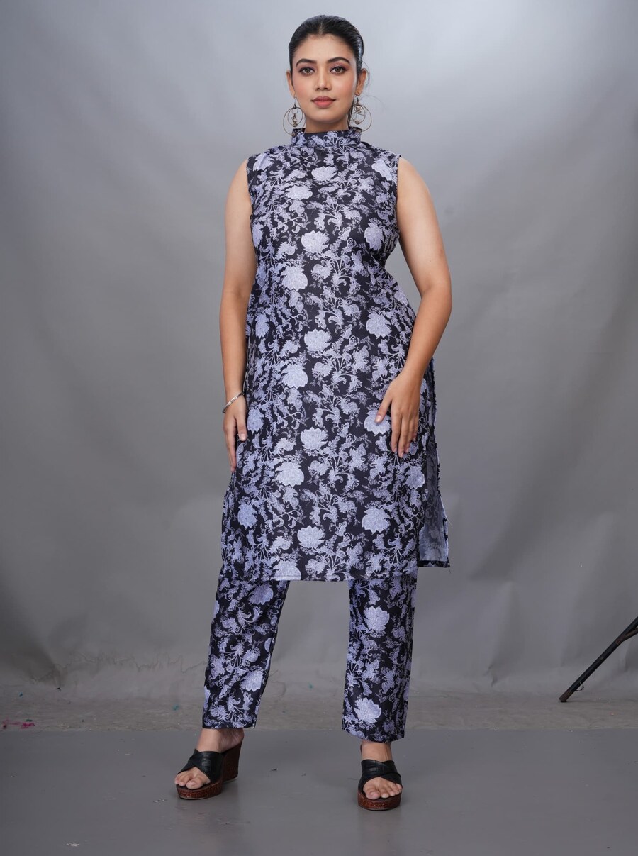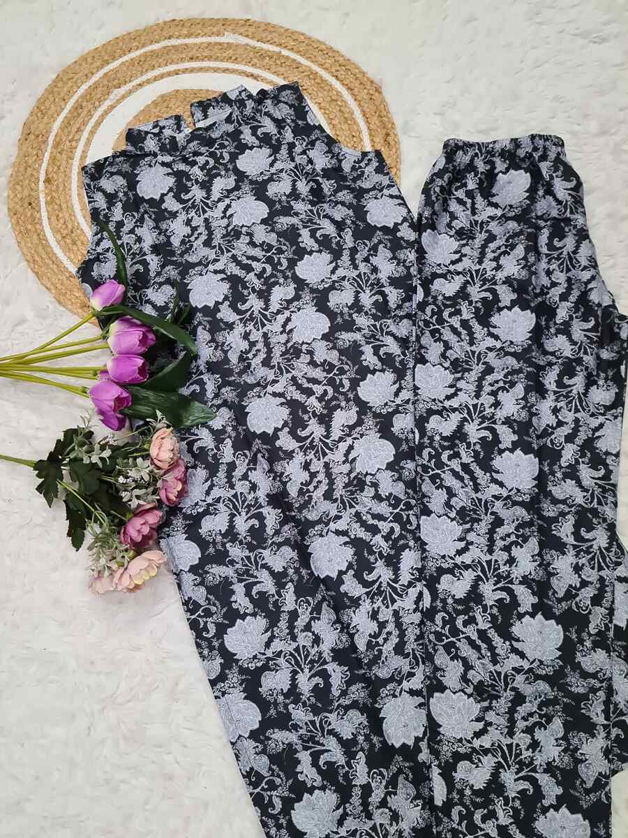 MODERN COTTON DIGITAL PRINTED WORK TOP BOTTOM SET NAVY BLUE