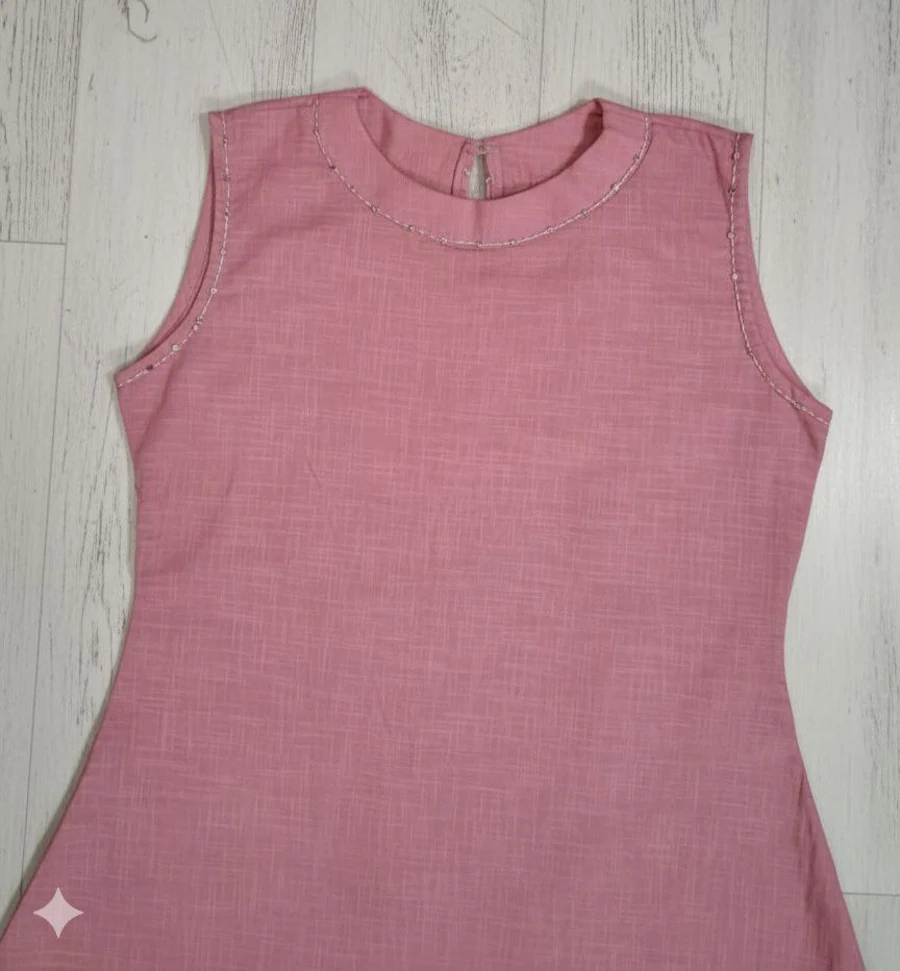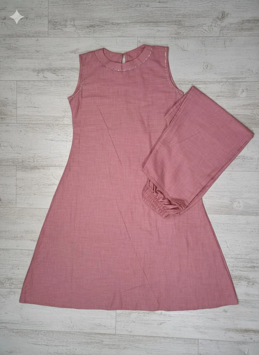 MODERN COTTON HAND WORK TOP PENT SET BABY PINK