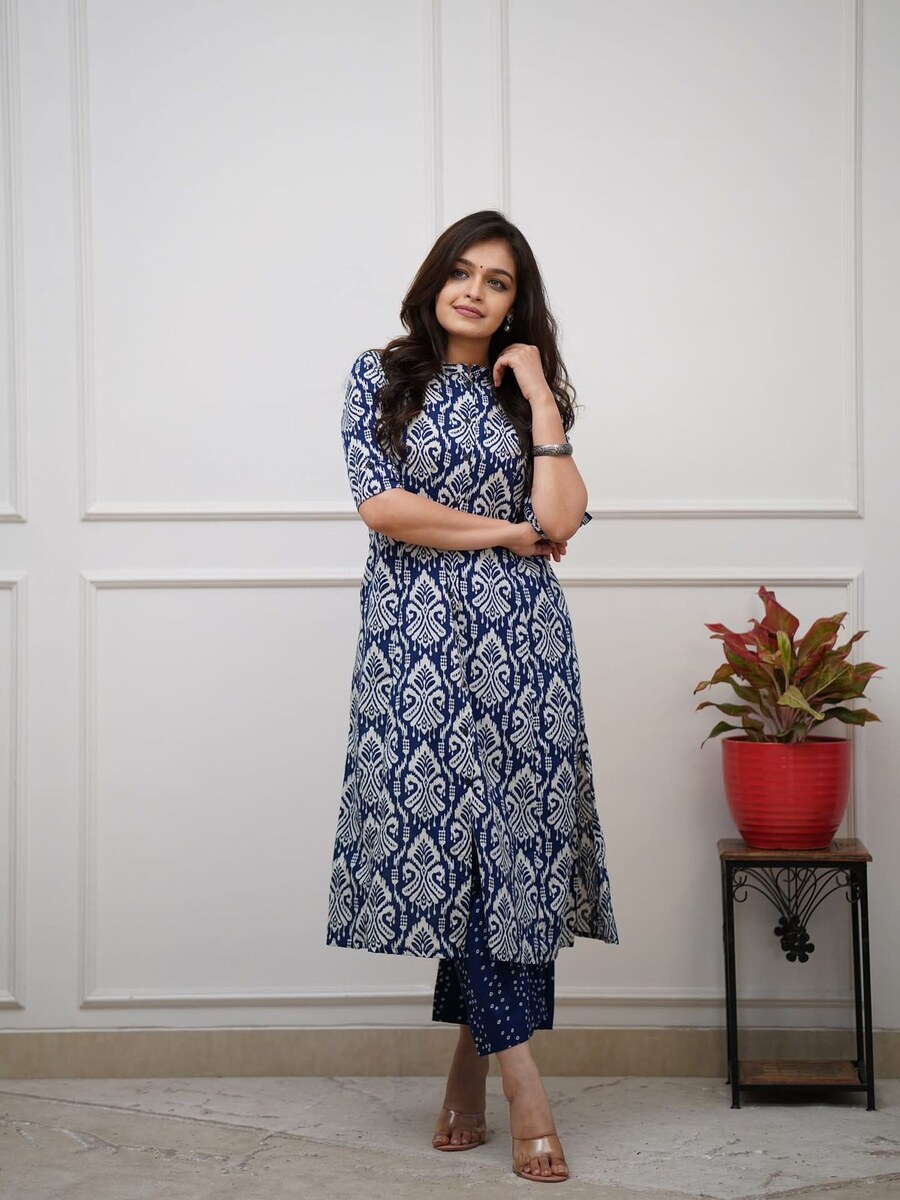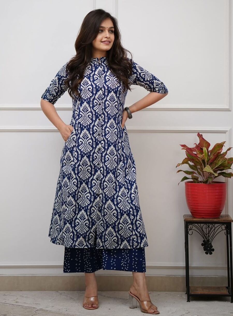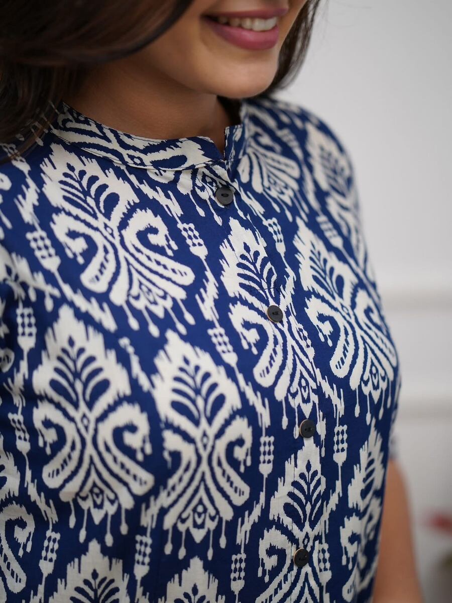 MODERN COTTON PRINTED WORK TOP PENT SET BLUE