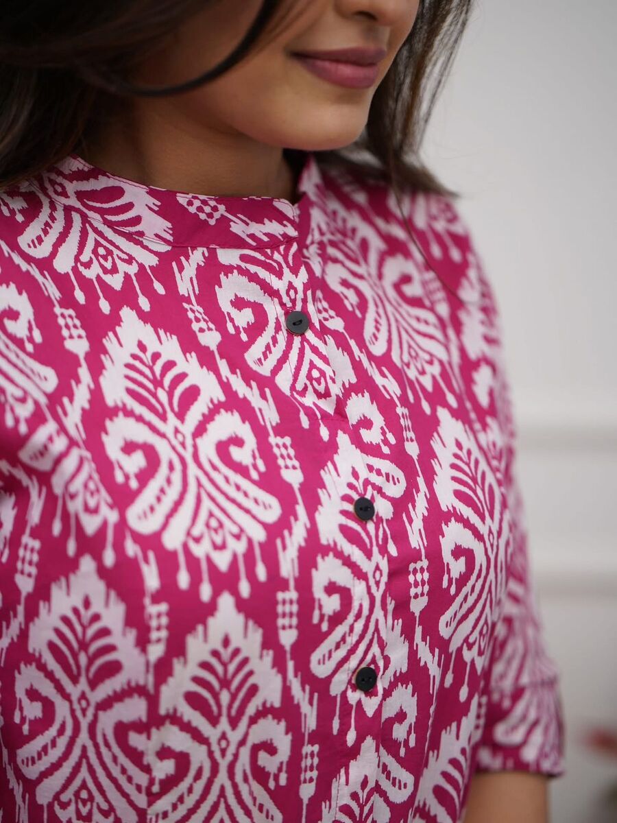 MODERN COTTON PRINTED WORK TOP PENT SET PINK