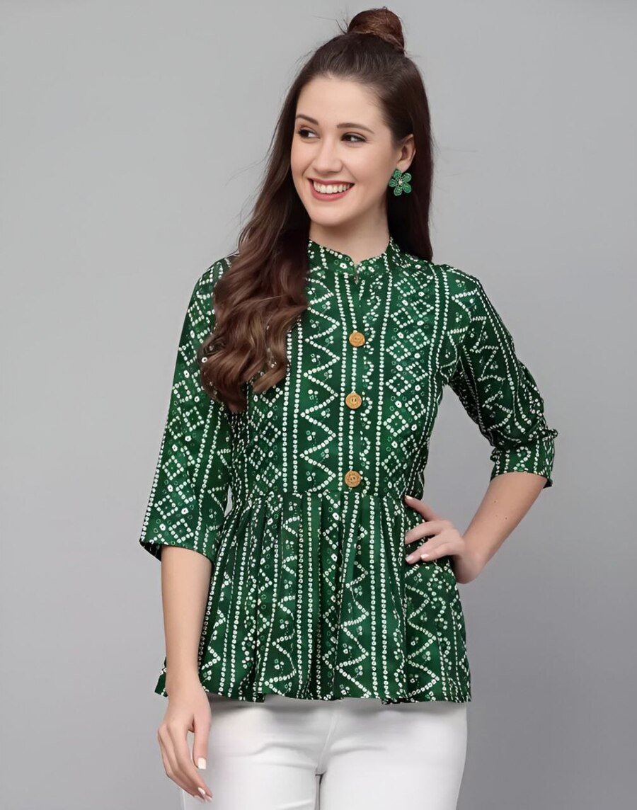 MODERN CREPE DIGITAL PRINT WORK TOP GREEN