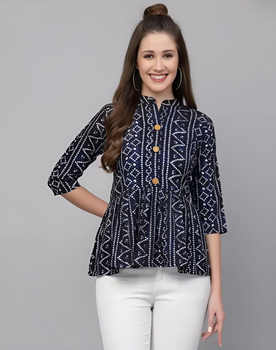 MODERN CREPE DIGITAL PRINT WORK TOP NAVY BLUE