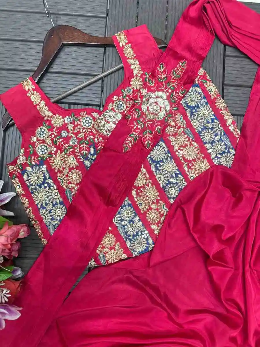 MODERN CREPE EMBROIDERY SEQUENCE WORK READY TO WEAR SAREE WITH STITCHED BLOUSE RANI
