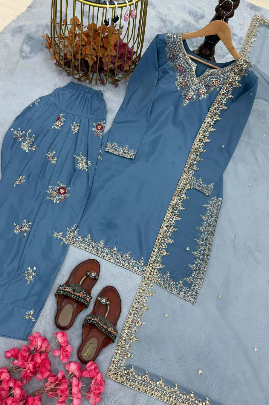 TOP FABRIC : PURE VICHITA SILK WITH HEAVY EMBROIDERY SEQUENCE WORK