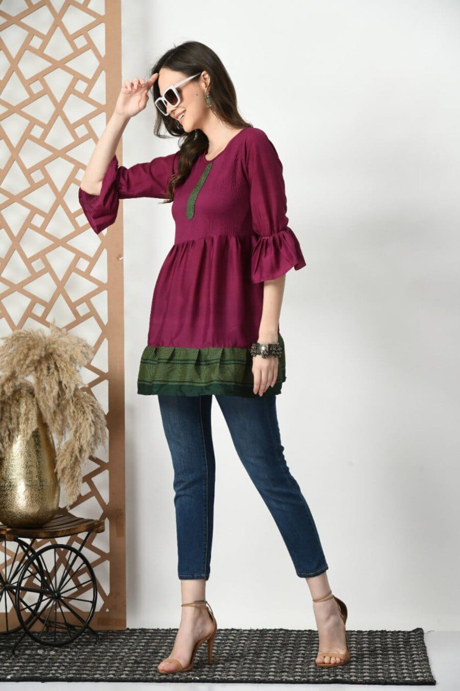 TUNIC TOP FABRIC :- PREMIUM LINEN COTTON FABRIC WITH WEAVING THREADS COMFORT FEEL