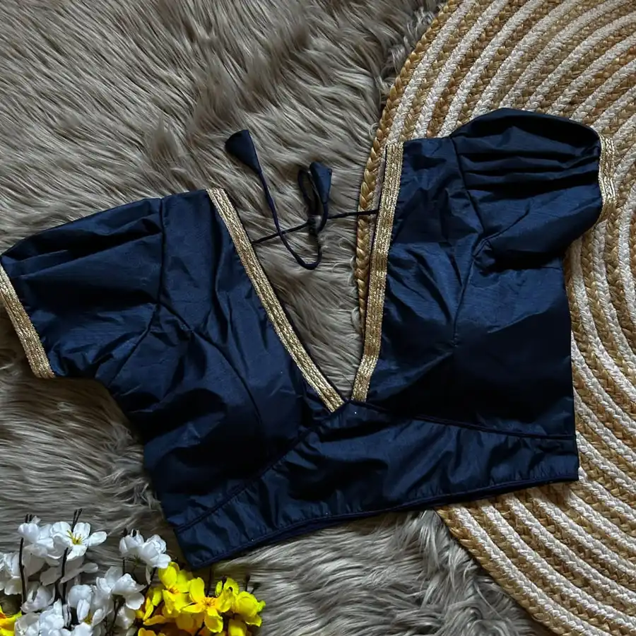 MODERN DOLA SILK LACE WORK STITCHED BLOUSE NAVY BLUE