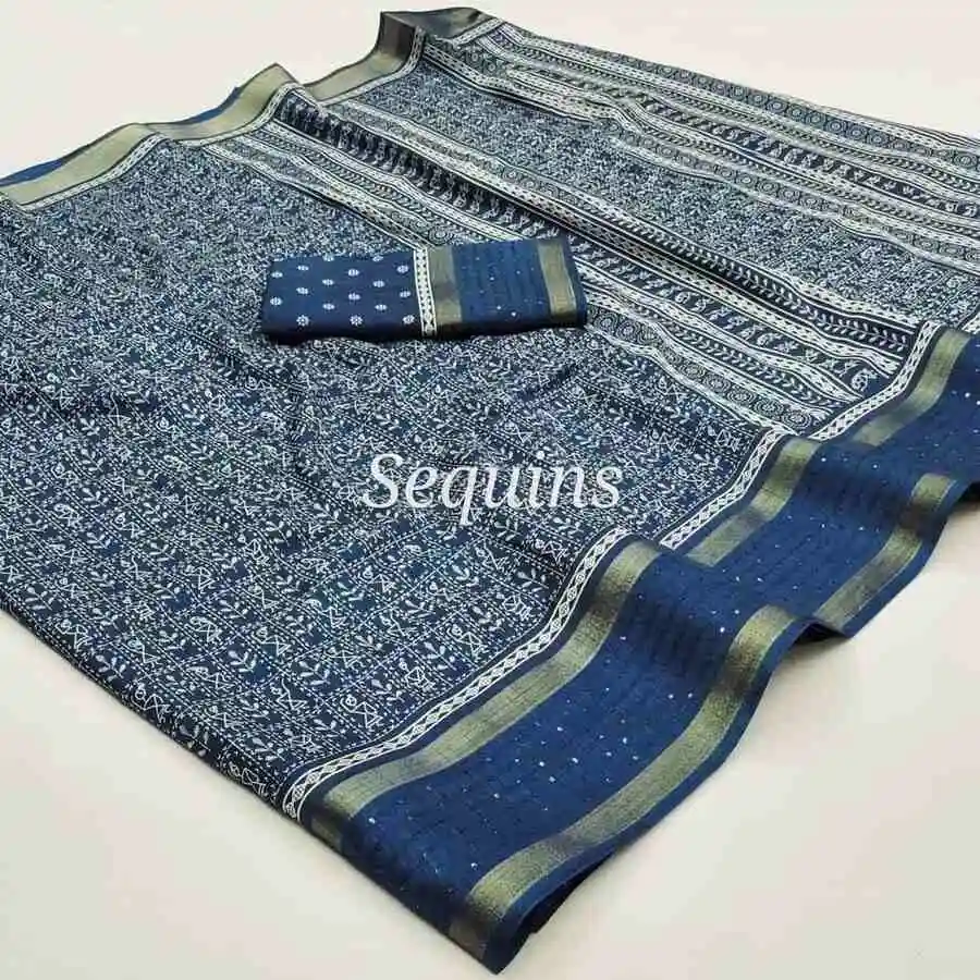 WORK : HEAVY ZARI WEAVING AND SEQUENCE WORK BORDER AND BEAUTIFUL HD KALAMKARI AND WARLI STYLE PRINT