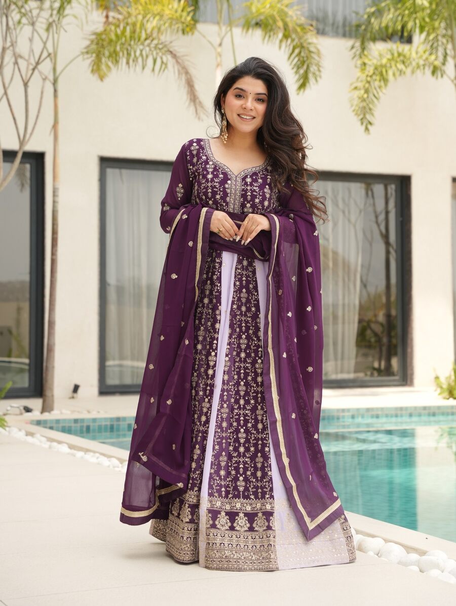 MODERN FAUX BLOOMING ZARI & SEQUENCE EMBROIDERY WORK GOWN WITH DUPATTA WINE