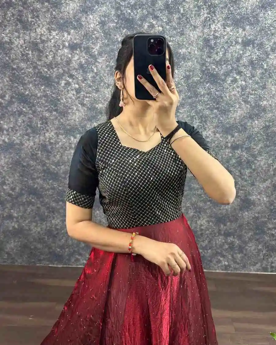 MODERN FENDY EMBROIDERY SEQUENCE WORK GOWN WITH DUPATTA MAROON