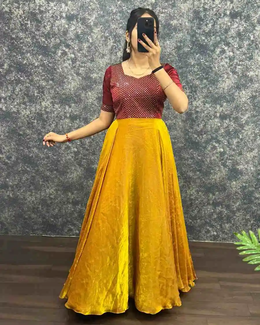 MODERN FENDY EMBROIDERY SEQUENCE WORK GOWN WITH DUPATTA YELLOW