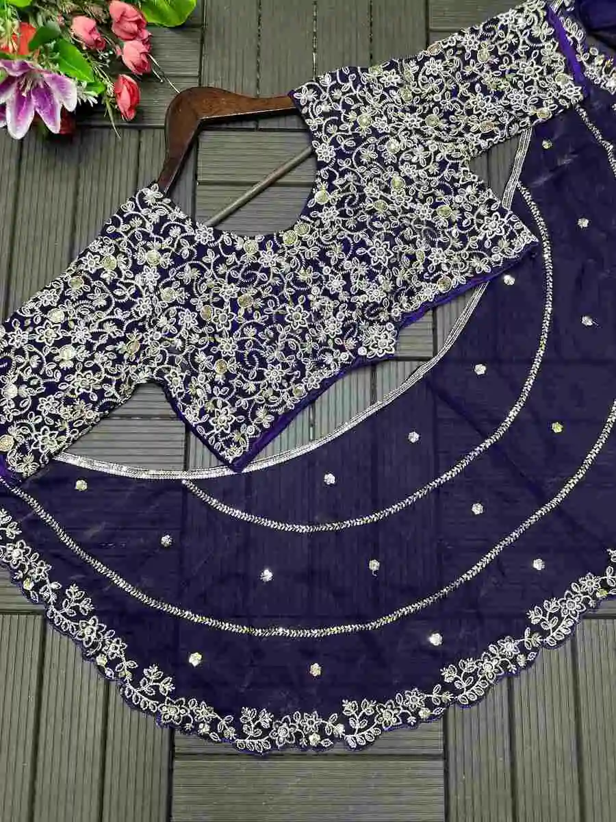 MODERN FENDY SATIN EMBROIDERY SEQUENCE WORK LEHENGA CHOLI WITH DUPATTA PURPLE