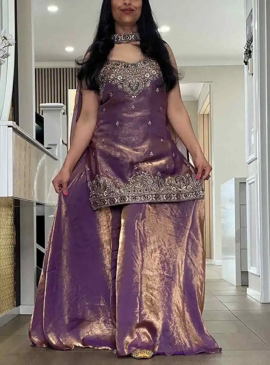 MODERN FENDY SILK EMBROIDERY SEQUENCE AND THREAD WORK TOP PALAZZO WITH DUPATTA PURPLE