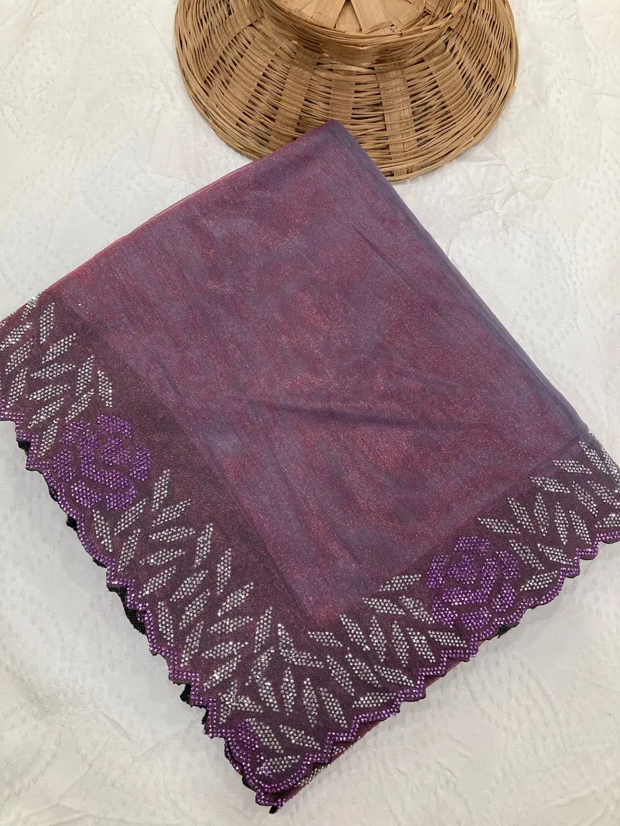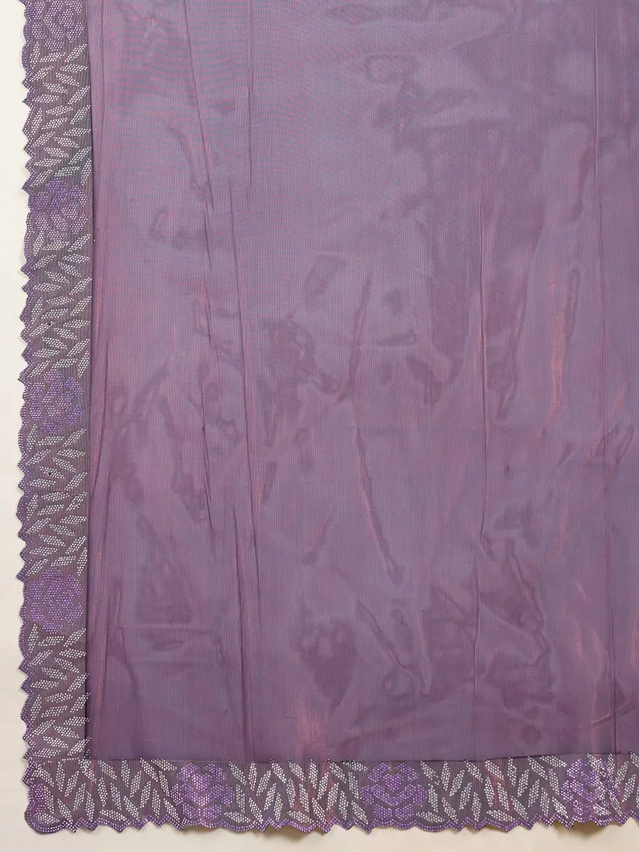 MODERN FENDY SOFT NET SWAROVSKI WITH CUT WORK SAREE WITH UNSTITCHED BLOUSE LAVENDER