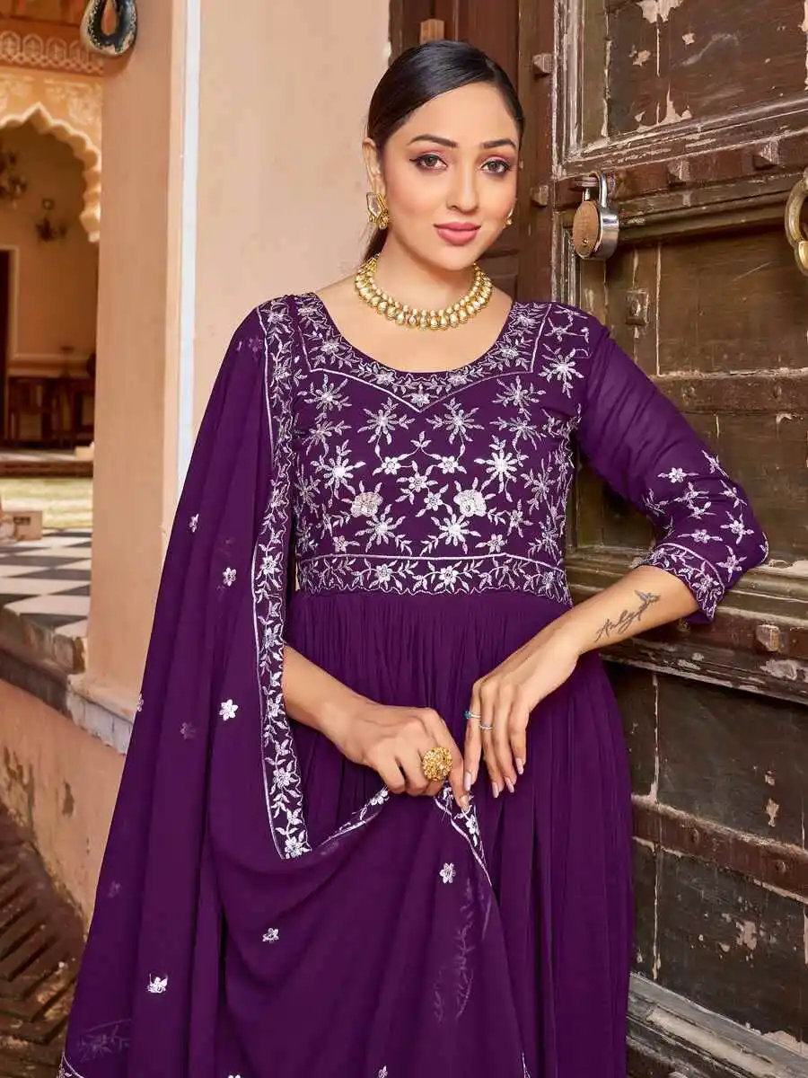 MODERN GAUX BLOOMING ZARI-SEQUENCE & EMBROIDERY WORK GOWN WITH DUPATTA WINE