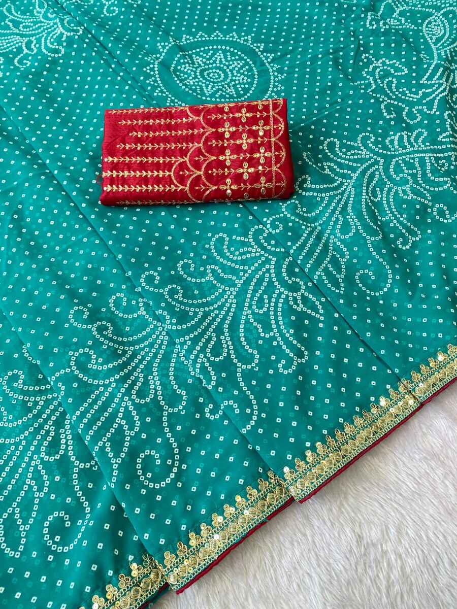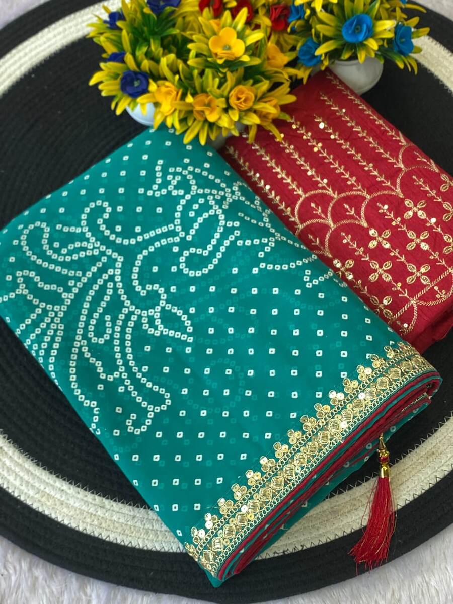 WORK : HEAVY CODING SEQUENCE BORDER WITH BANDHANI FOIL PRINT