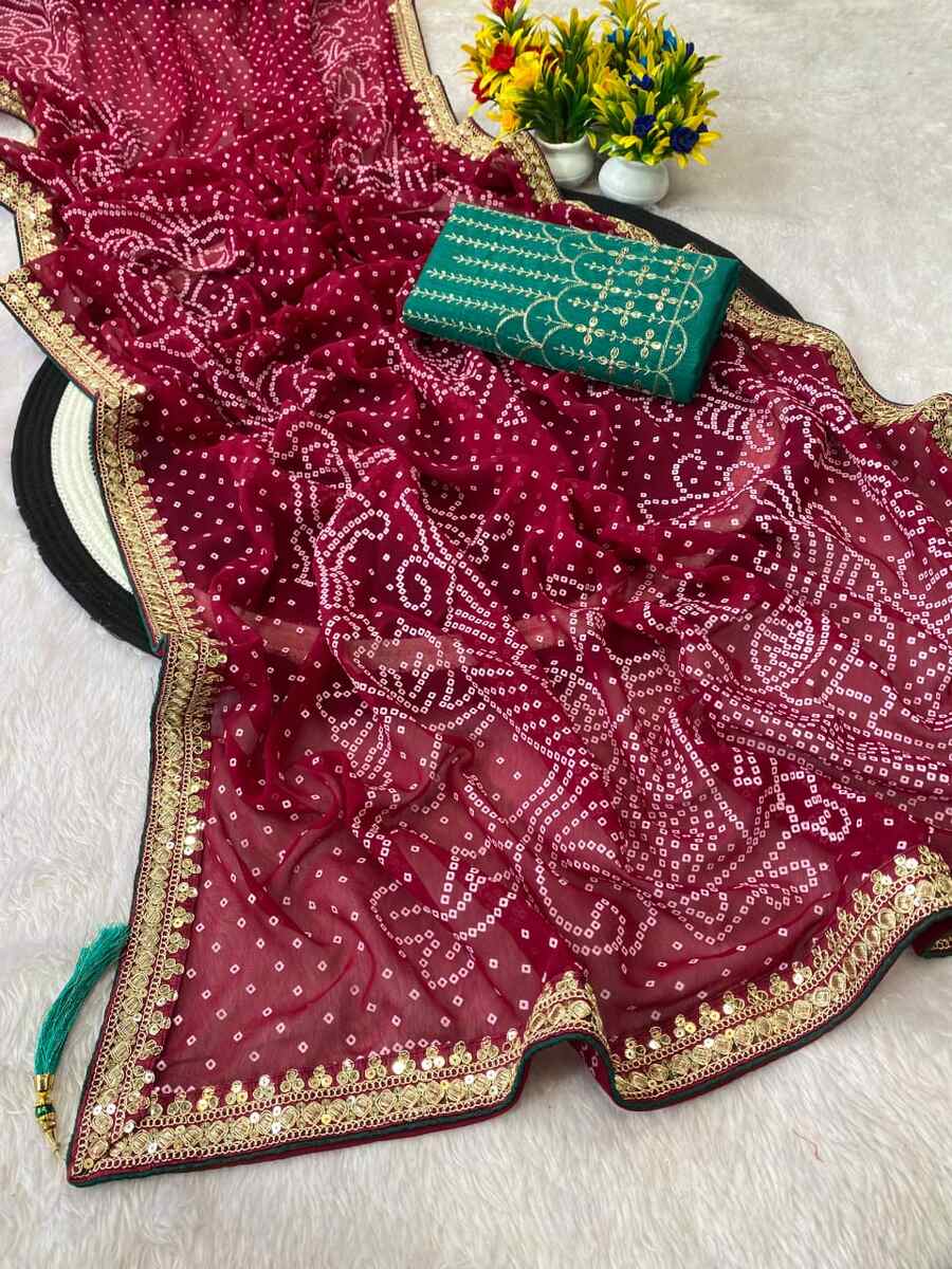 MODERN GEORGETTE CODING SEQUENCE BORDER WORK SAREE WITH UNSTITCHED BLOUSE RANI