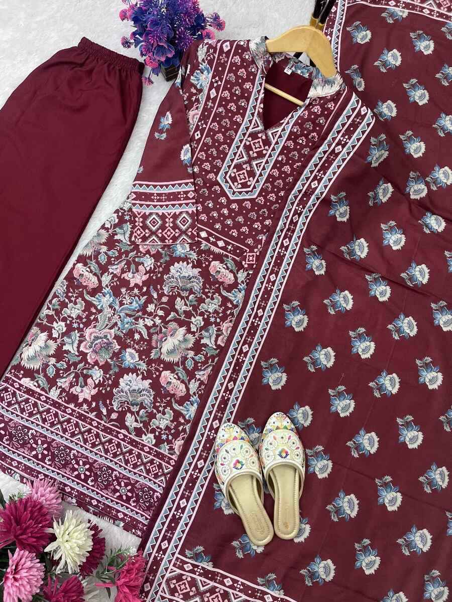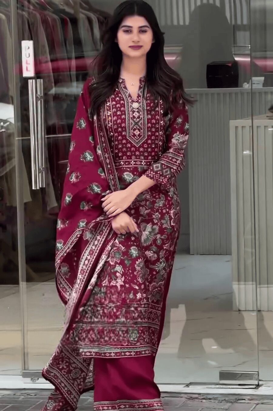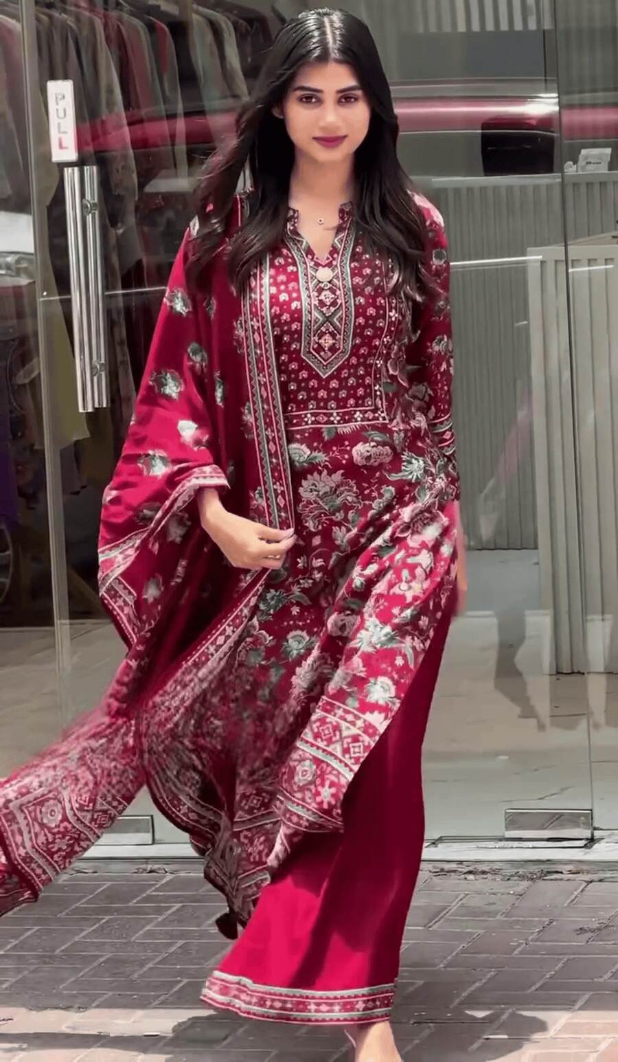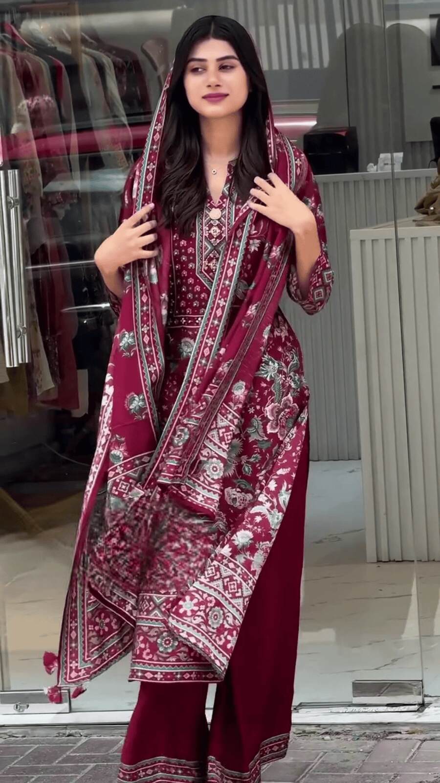MODERN GEORGETTE DIGITAL PRINT & REAL MIRROR WORK TOP PALAZZO WITH DUPATTA MAROON