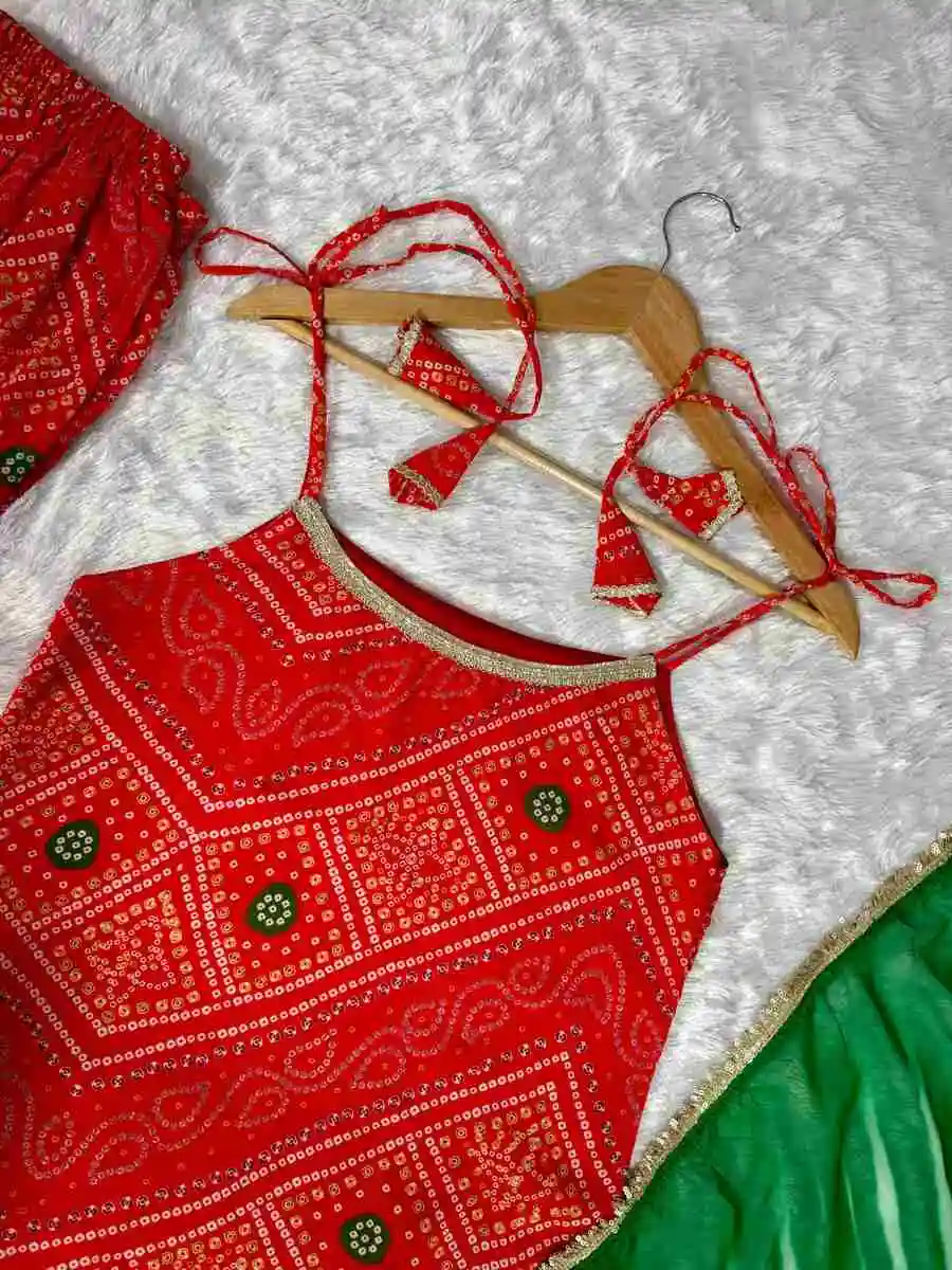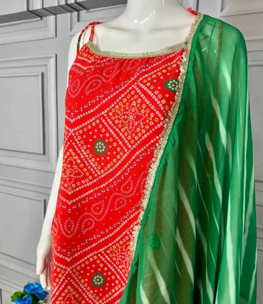 MODERN GEORGETTE DIGITAL PRINTED WITH LACE WORK TOP SHARARA WITH DUPATTA RED AND GREEN