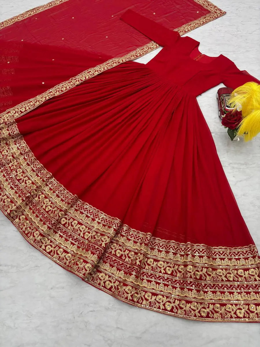MODERN GEORGETTE EMBROIDERY CODING SEQUENCE WORK GOWN WITH DUPATTA RED