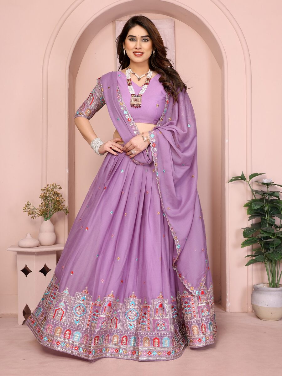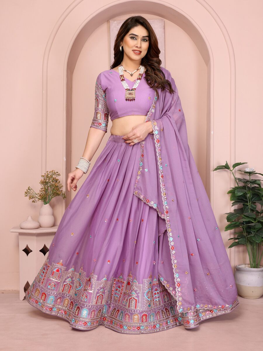 MODERN GEORGETTE EMBROIDERY WORK LEHENGA CHOLI WITH DUPATTA LAVENDER