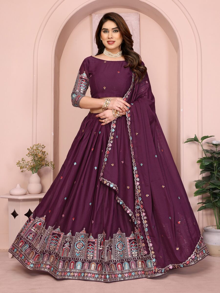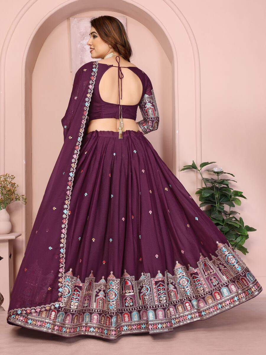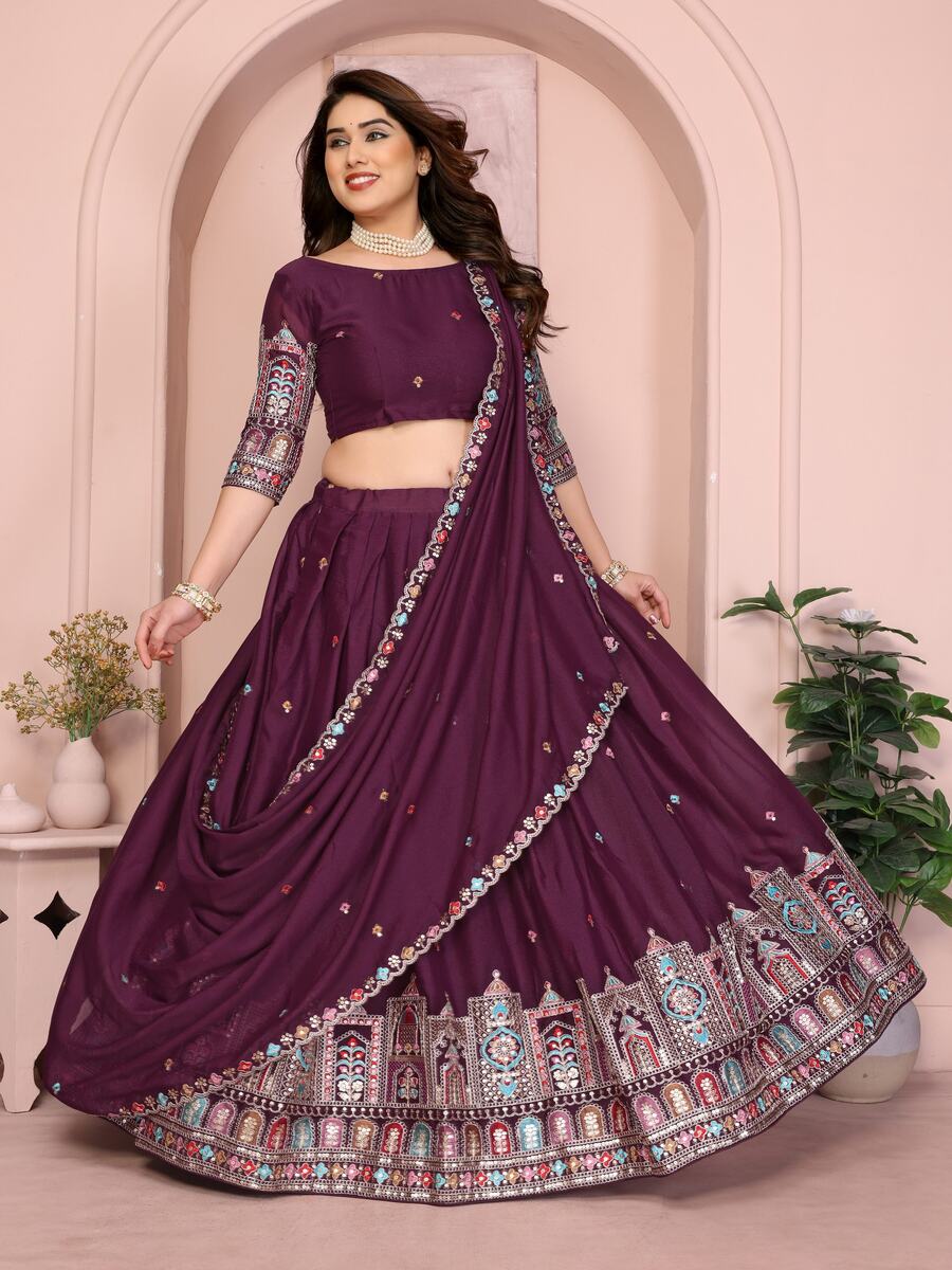 MODERN GEORGETTE EMBROIDERY WORK LEHENGA CHOLI WITH DUPATTA WINE