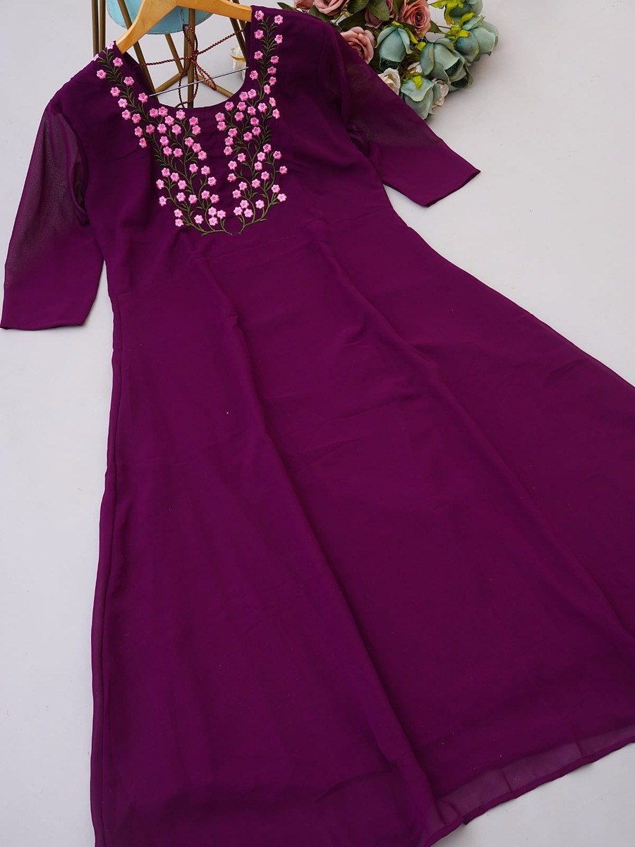MODERN GEORGETTE EMBROIDERY WORK ONLY KURTI PURPLE