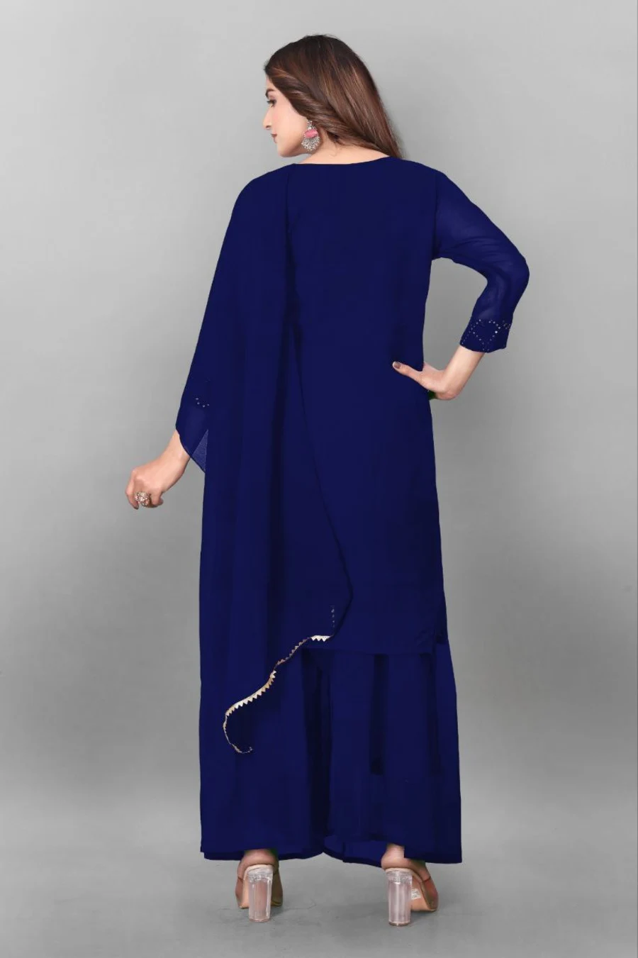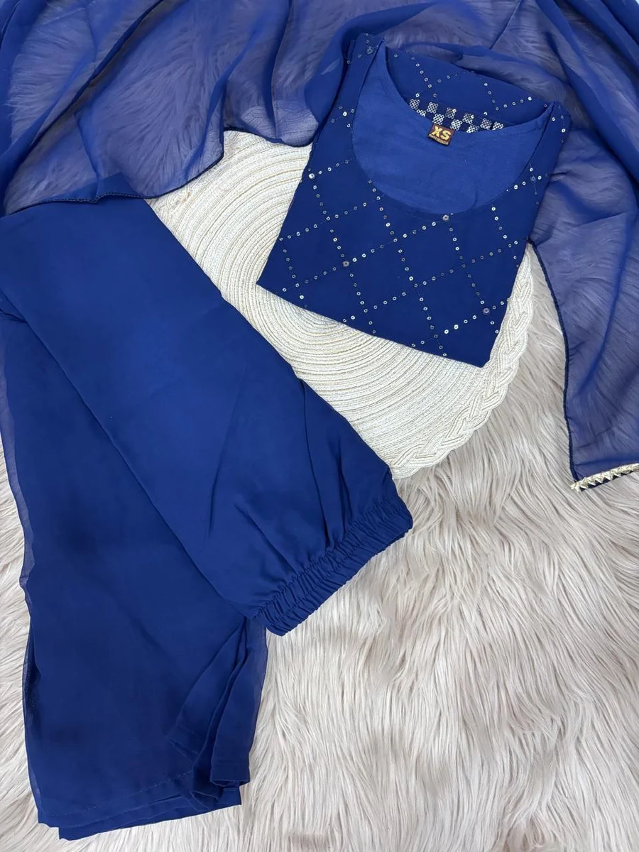 MODERN GEORGETTE EMBROIDERY WORK TOPM PALAZZO WITH DUPATTA BLUE
