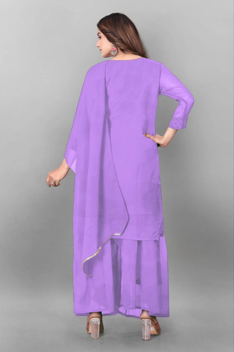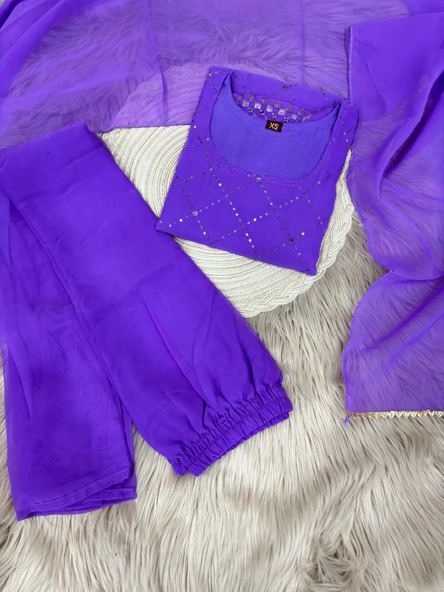 MODERN GEORGETTE EMBROIDERY WORK TOPM PALAZZO WITH DUPATTA LAVENDER