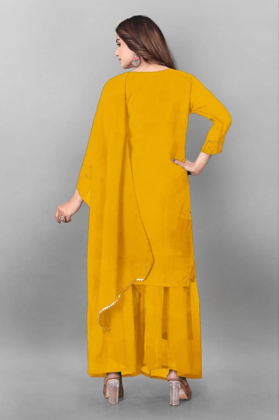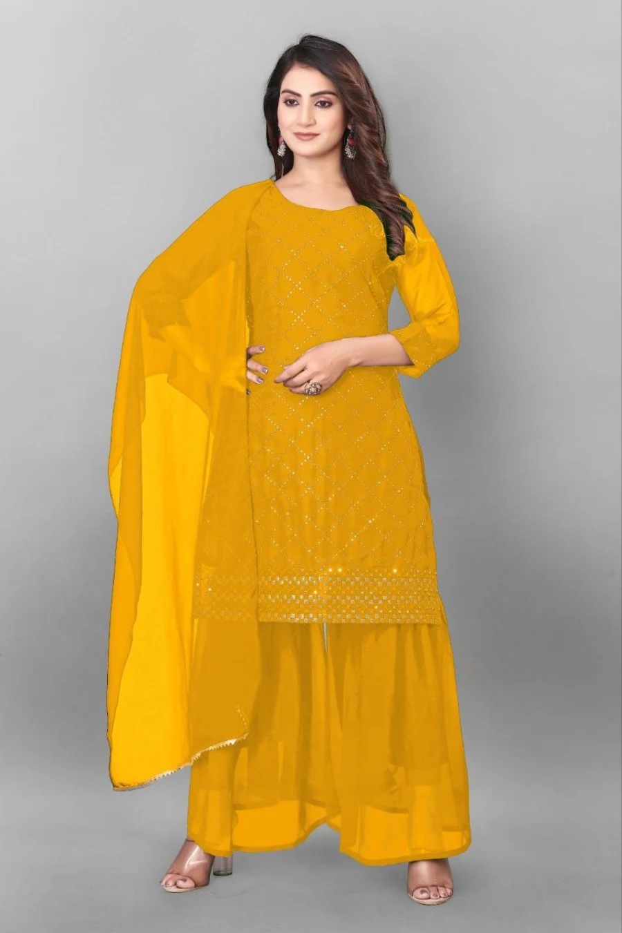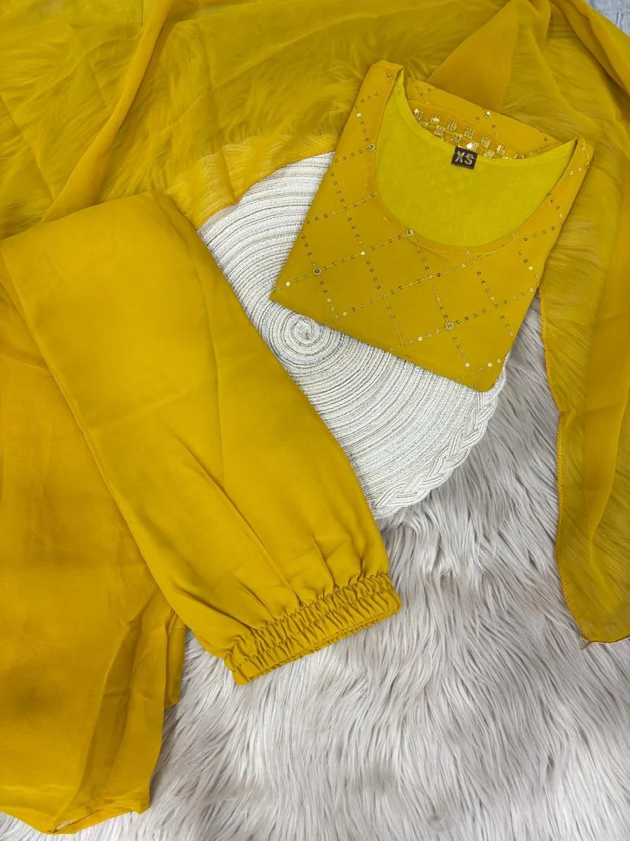 MODERN GEORGETTE EMBROIDERY WORK TOPM PALAZZO WITH DUPATTA YELLOW