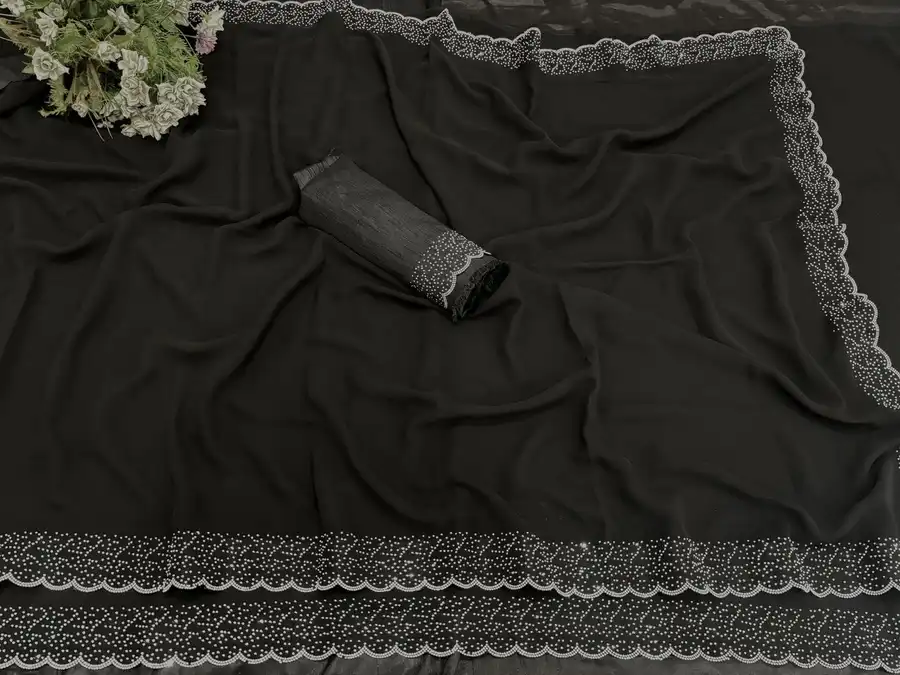MODERN GEORGETTE HOTFIX WORK SAREE WITH UNSTITCHED BLOUSE BLACK