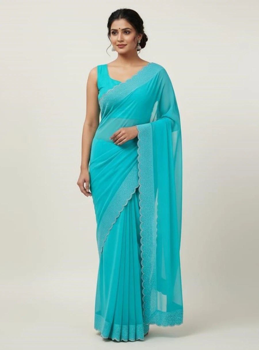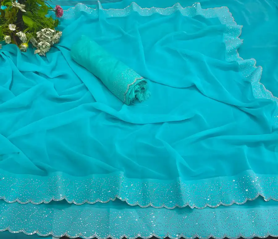 MODERN GEORGETTE HOTFIX WORK SAREE WITH UNSTITCHED BLOUSE RAMA
