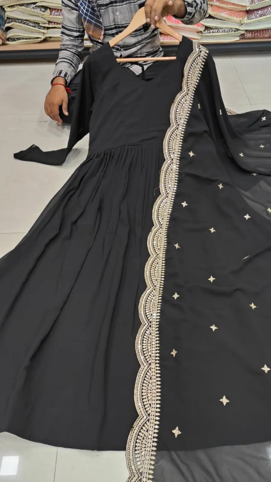 MODERN GEORGETTE PLAIN GOWN WITH EMBROIDERY SEQUENCE WORK DUPATTA BLACK