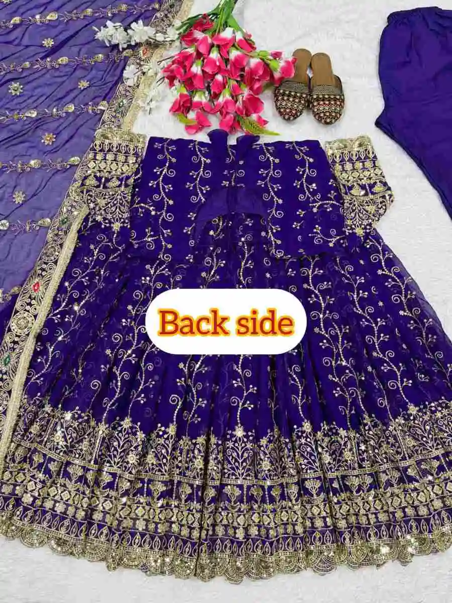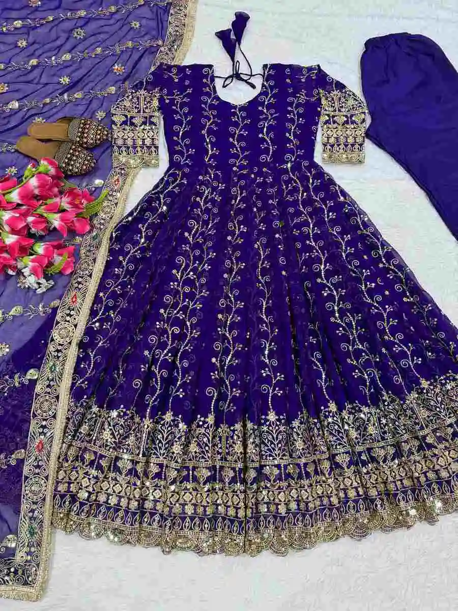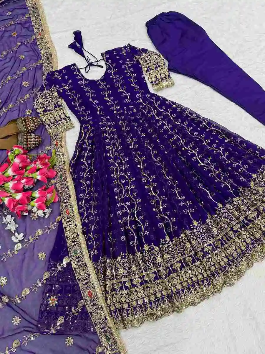 MODERN GEORGETTE SEQUENCE EMBROIDERY WORK ANARKALI BOTTOM WITH DUPATTA PURPLE