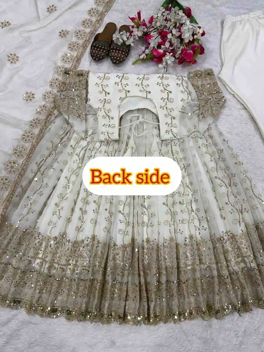 MODERN GEORGETTE SEQUENCE EMBROIDERY WORK ANARKALI BOTTOM WITH DUPATTA WHITE