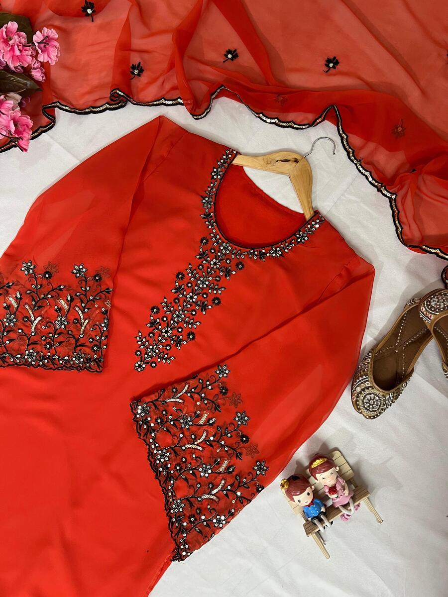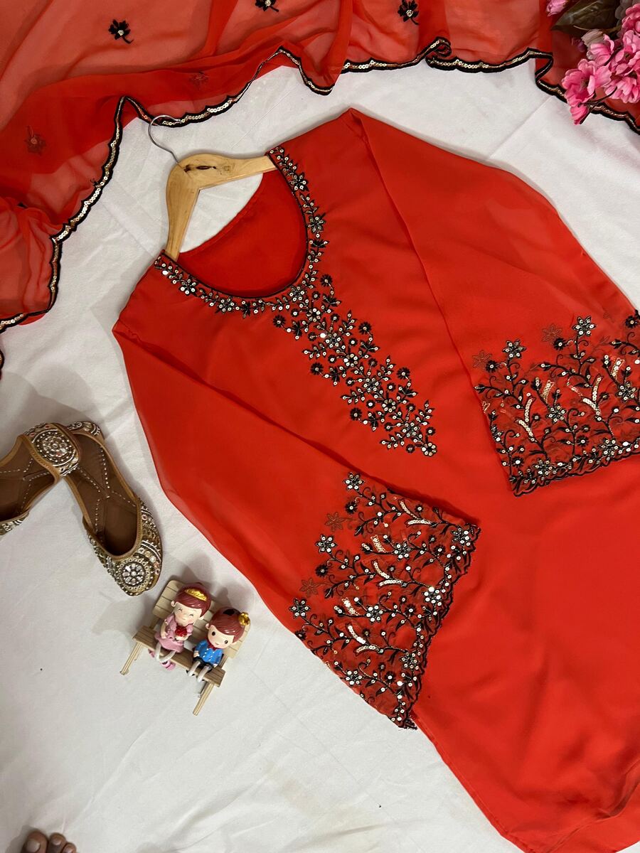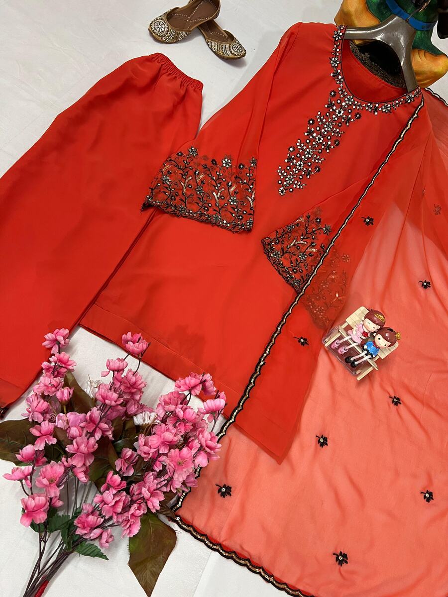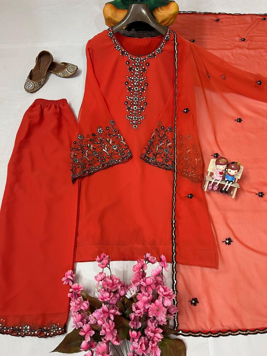 MODERN GEORGETTE THREAD AND SEQUENCE EMBROIDERY WORK TOP PALAZZO WITH DUPATTA ORANGE