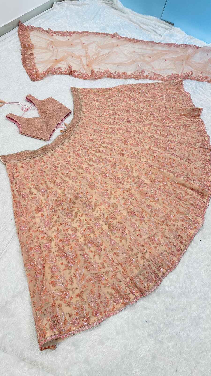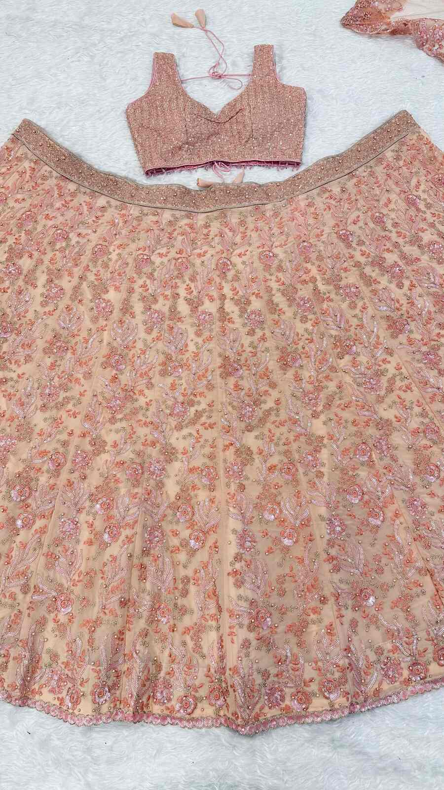 MODERN GEORGETTE THREAD , DORI , SEQUENCE & PEARL BEADS WORK LEHENGA CHOLI WITH DUPATTA BABY PINK