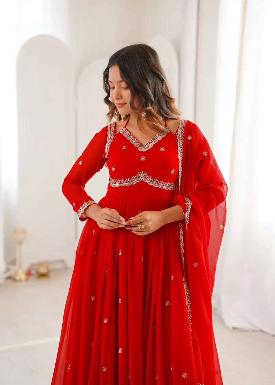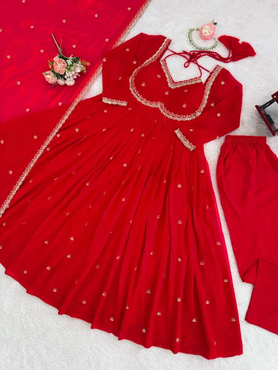 MODERN GEORGETTE THREAD WITH SEQUENCE WORK GOWN BOTTOM WITH DUPATTA RED