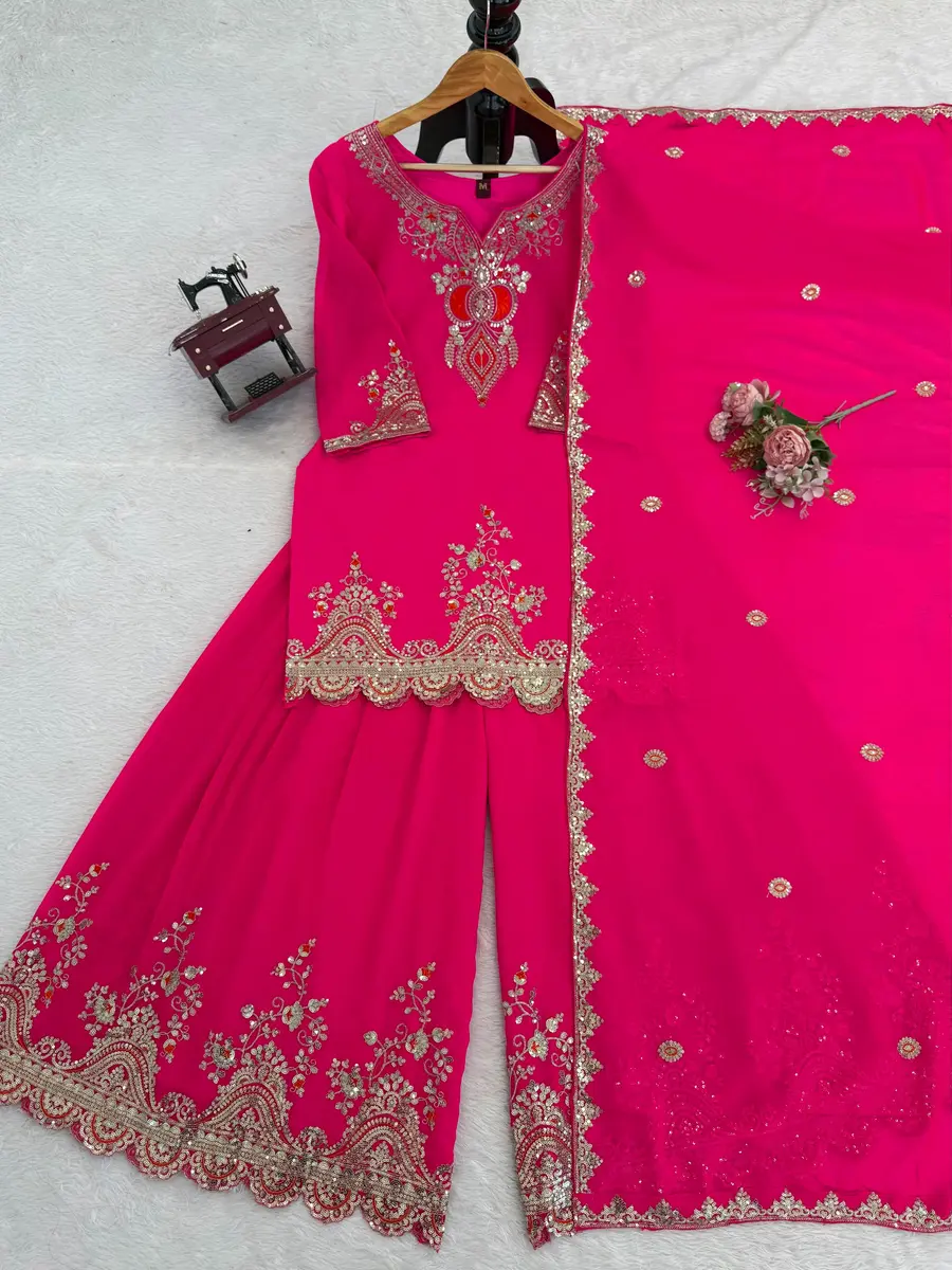 MODERN GEORGETTE THREAD WITH SEQUENCE WORK TOP PALAZZO WITH DUPATTA RANI