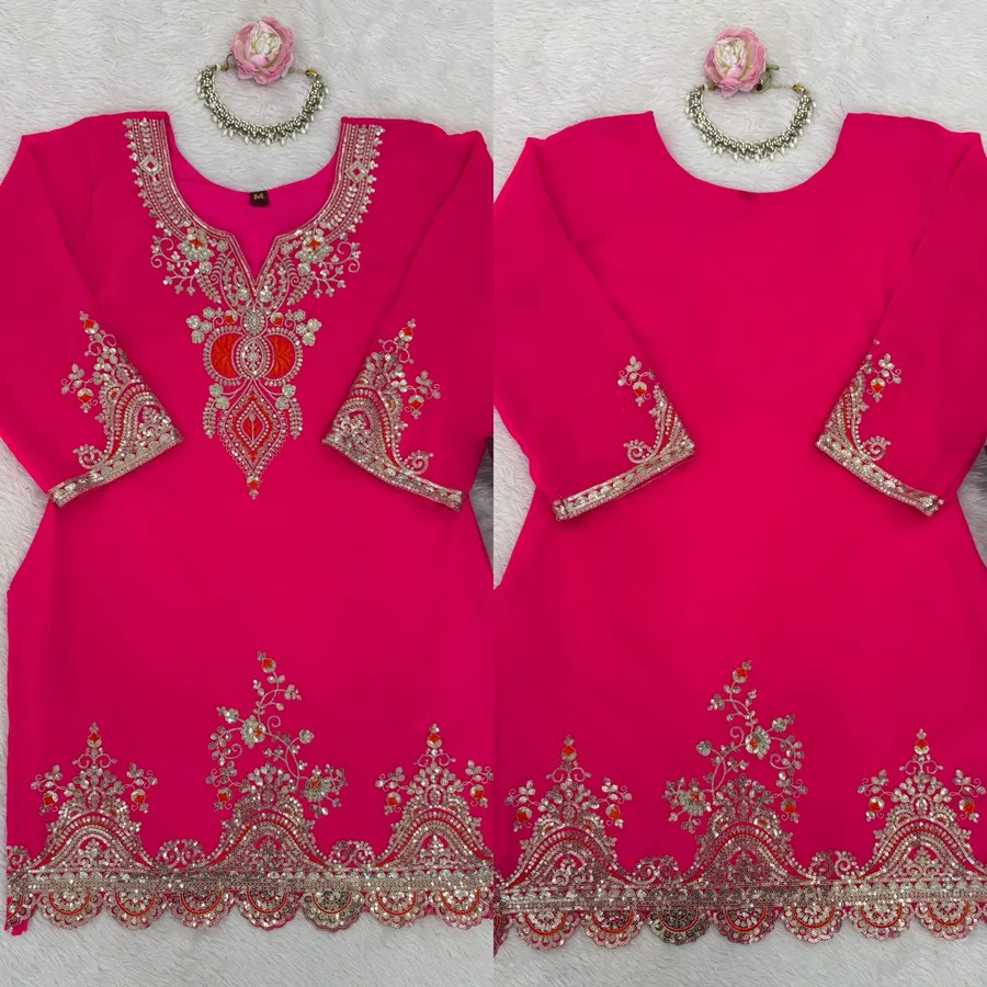 KURTI WORK : HEAVY EMBROIDERY AND 5MM SEQUENCE WORK (ONLY FRONT SIDE WORK)