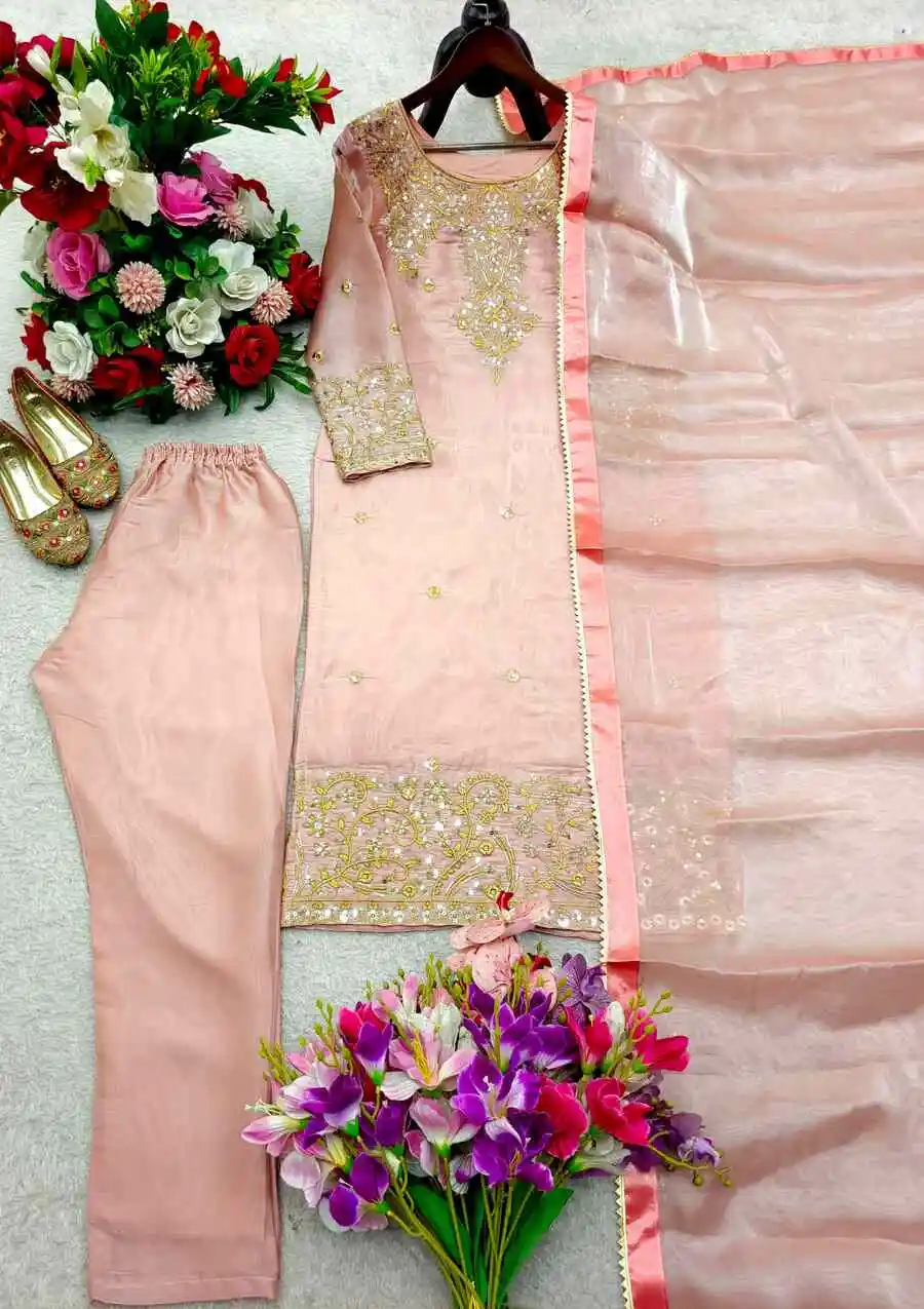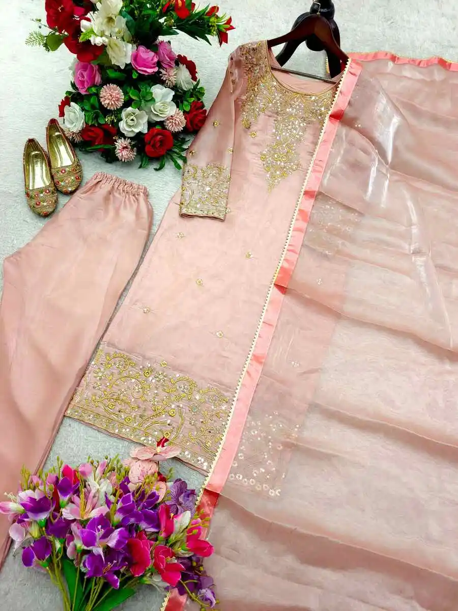 MODERN GMY SILK EMBROIDERY SEQUENCE WORK TOP BOTTOM WITH DUPATTA PEACH