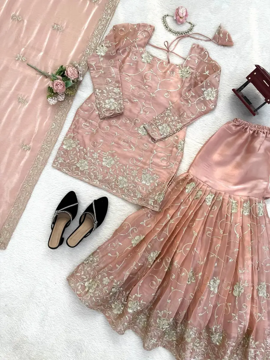MODERN GMY SILK THREAD WITH SEQUENCE WORK TOP SHARARA WITH DUPATTA BABY PINK
