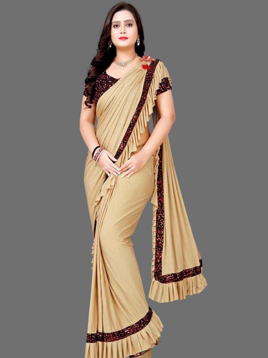 MODERN IMPORTED SEQUENCE WORK READY TO WEAR SAREE WITH UNSTITCHED BLOUSE GOLD
