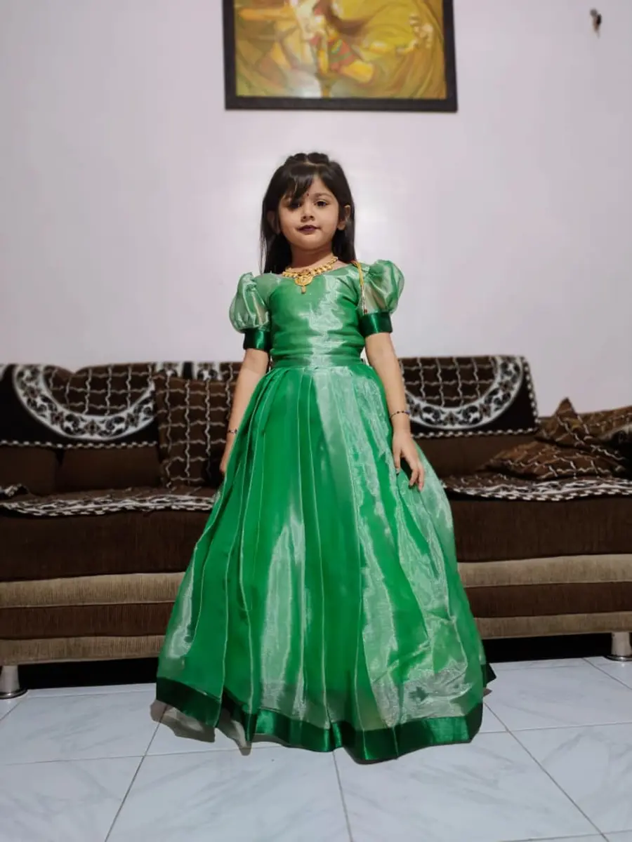 MODERN JC SILK SATIN LACE BORDER WORK KID’S GOWN GREEN