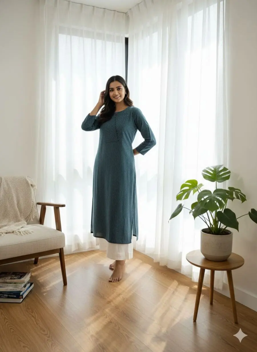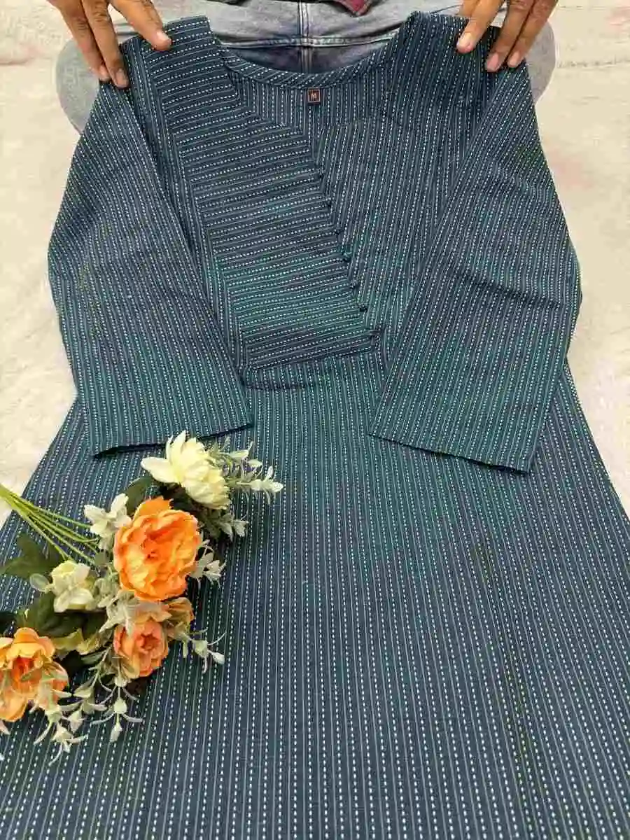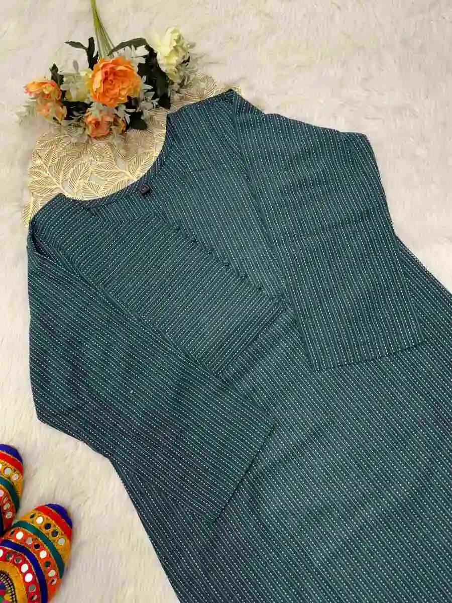 MODERN KATHA COTTON BEAUTIFUL PATTERN WORK KURTI TEAL
